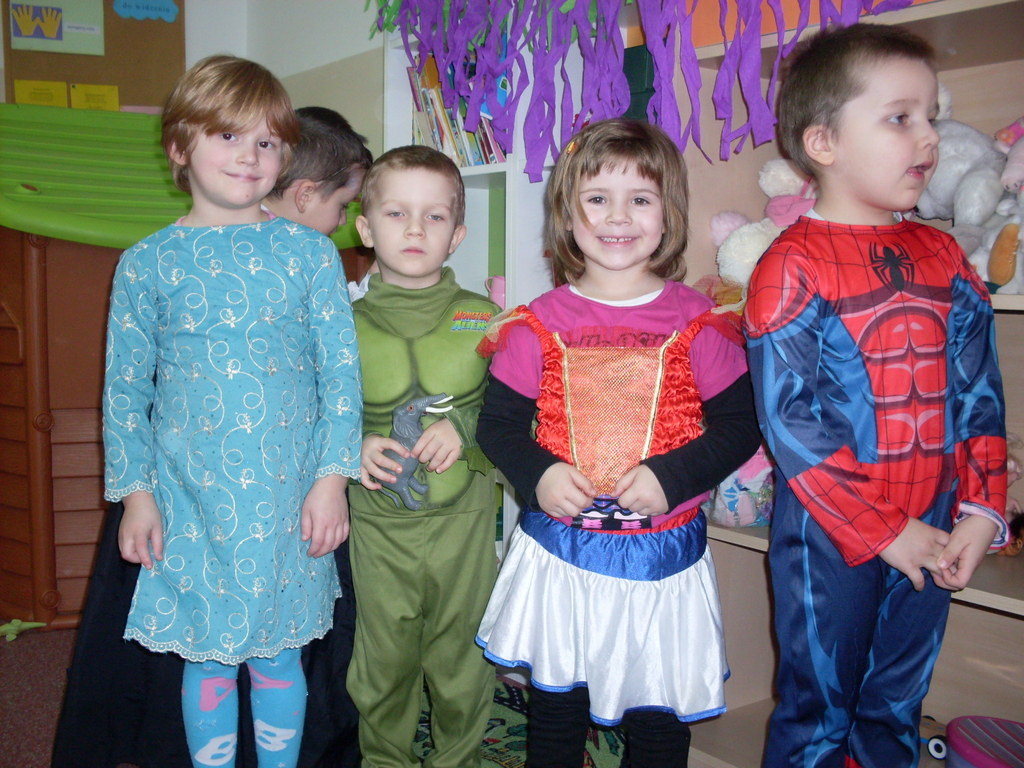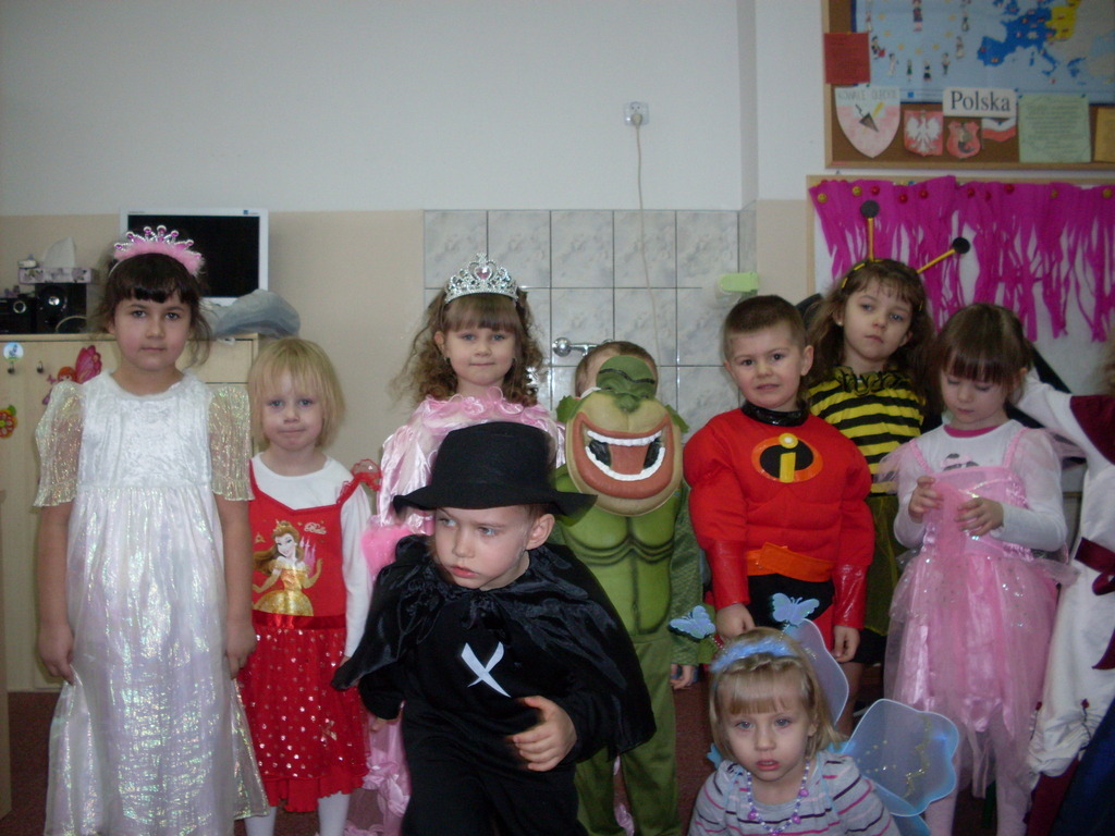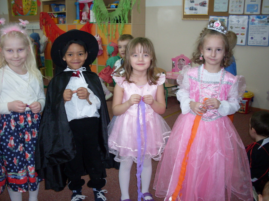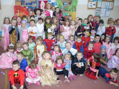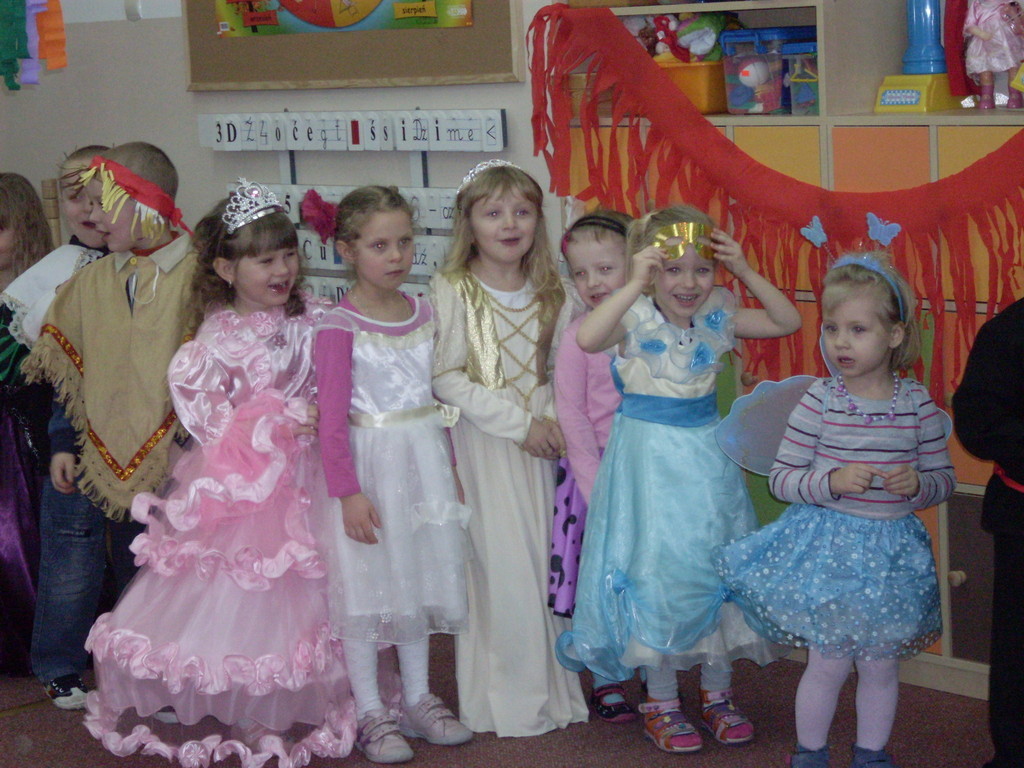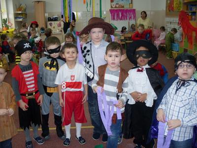 W czwartek, 20 lutego 2014 roku przedszkolaki miały okazję ,,dotknąć” karnawałowej tradycji i zaistnieć w roli bajkowych bohaterów. Rodzice zadbali o barwne stroje dzieci, a tańce przy muzyce wyzwoliły ich aktywność. Akcentem uświetniającym zabawę był m in. taniec ,,Krasnoludek” i ,,Taniec z gwiazdami”, który wymagał umiejętności liczenia. W atmosferę wspaniałej zabawy swój wkład miały: dobra muzyka, wystrój sali i w roli głównej, stroje dzieci. Takie i podobne zabawy wzmacniają koloryt dnia codziennego w naszym przedszkolu.