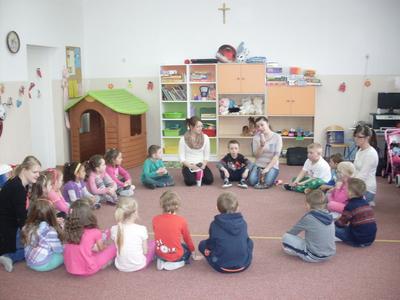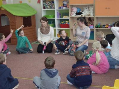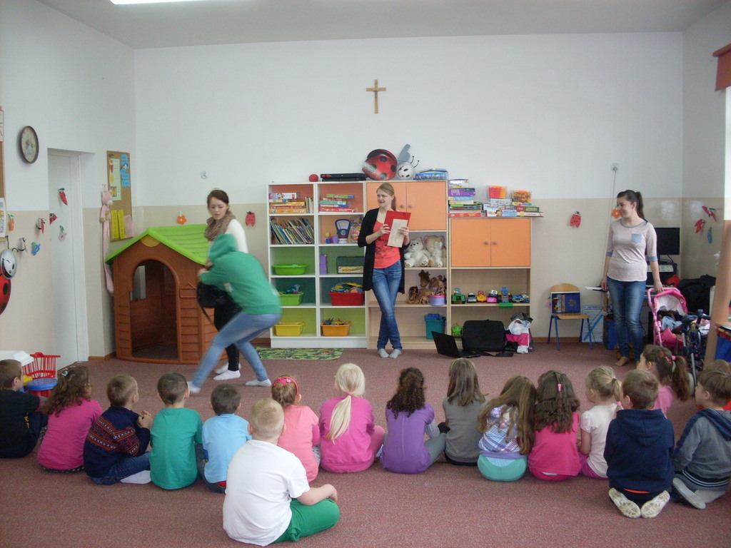 W środę, 15 kwietnia 2014 roku w naszym przedszkolu gościliśmy studentki z Uniwersytetu Warmińsko -Mazurskiego.  Przygotowały one dla 5-6-latków  ciekawe zajęcia na temat różnych zawodów, podczas których dzieci wykazały się dużą aktywnością.